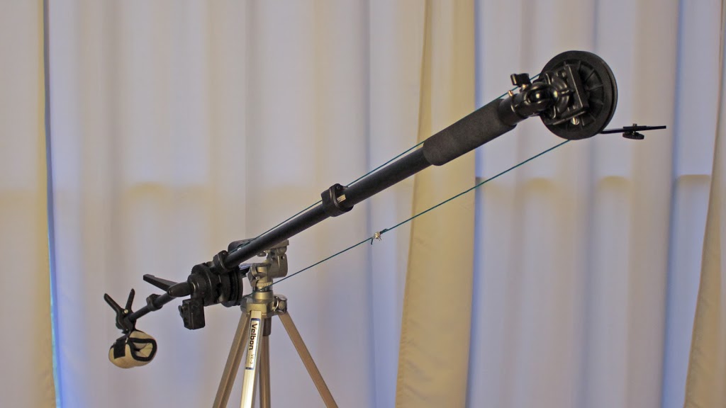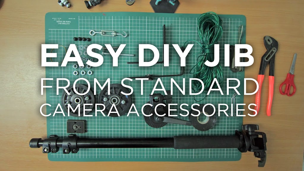 In this video I will teach you how to build a camera jib with remote tilt made from various camera accessories and you can find in a camera shop or buy online. And only need to drill 4 holes through a plastic pulley and the rest is super easy to put together.