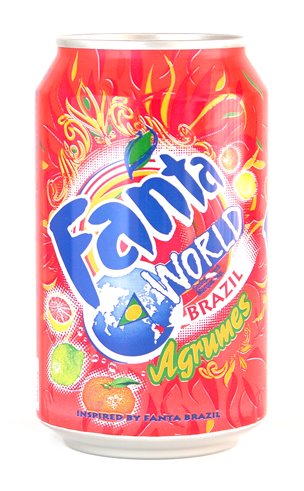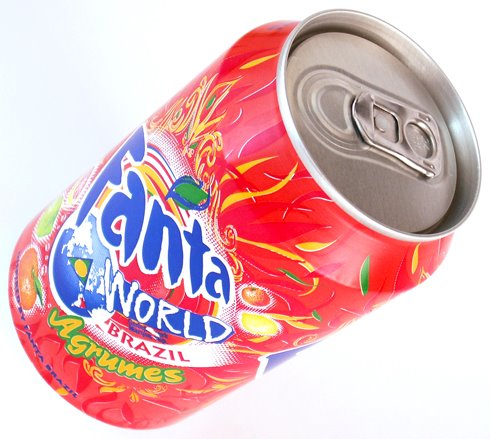 This is not really that new but I like the design though. Simple swirls and different citrus and halftone behind the fruits. However on the buttom inspired by Fanta Brazil should been left out because it did not fit with the design, making it less clean than it could. The colors used on this can is pink ( somehow it’s became red in the pictures), red, green, yellow and dark blue.