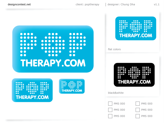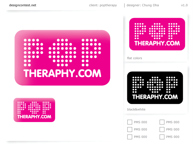 This is my entry for Poptheraphy.com. A website with news about celebrities. The design should be going to the direction of Roy Lichtenstein so I made the Pop out of dots. Cause I know Roy Lichtenstein uses dots for halftone effect only I am not sure how to make easy halftones yet. This is the 3rd version of the logo with Web2.0 gloss.