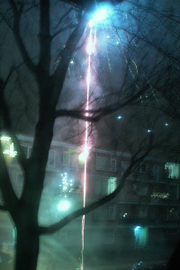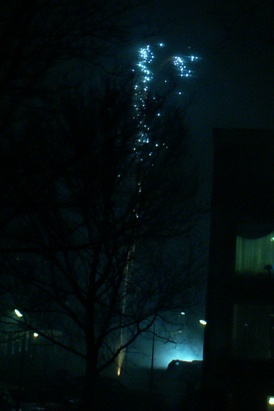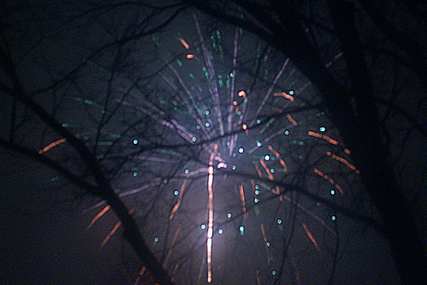 Multiple fireworks, but the light were on inside. And making picture from inside the house, shut the lights so you wont get reflections from the glass. Click read full post to see the rest of the pictures.