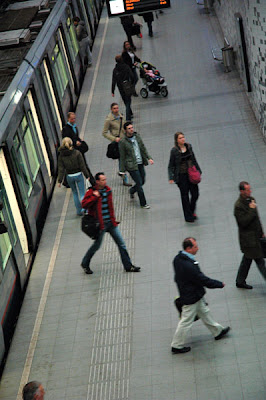 This is a pretty cool picture some what you would expect to be made. A top shot of people coming out of the subway trains.