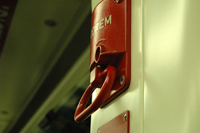 A close up photo of the emergency stop brake in the subway train. I like this shot because the emergency stop lever is clear and sharp and is the main thing you look at and the thing in the back are all blurred.