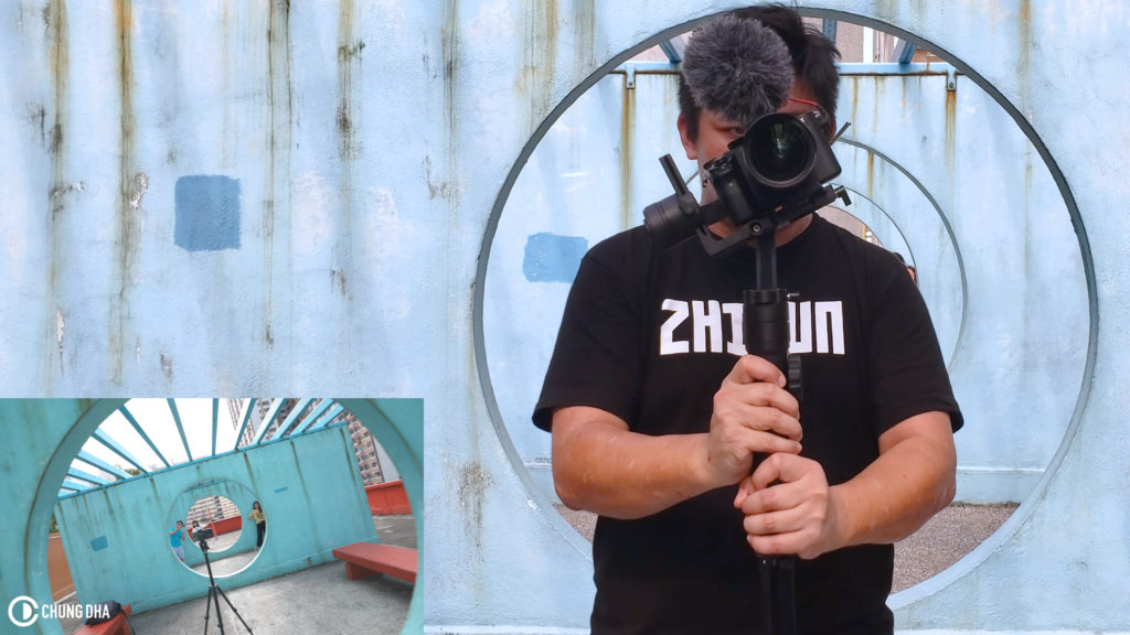 First method is one that is advertised as POV mode, which you need to rotate the grip by hand to rotate the camera with this movement, however this mode is only available on the Zhiyun Crane Plus and Crane 2 with an updated firmware. But after using this method a few time, I found it quite difficult to aim your camera and hold it in a straight line, as it is a full follow move which also the roll axis follow the grip movement and with both your arms are moving aim it straight constantly even with a lot of practise.