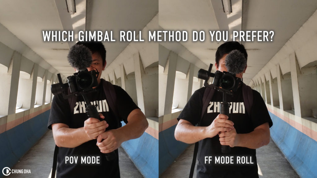 Second method is using Full Follow mode which is in my opinion much easier to achieve this Gimbal Roll shot which can be done in almost any of the Zhiyun Crane Gimbals. All you need to do is go into FF Mode and the push the joystick either left or right, this method simplifies everything much more, making easier to hold a straight shot as your hands are not moving and also have the gimbal rotate at a much more constant speed, aswell you can use your app to change the speed of the control to make it rotate slower or have someone assisting the rotation.