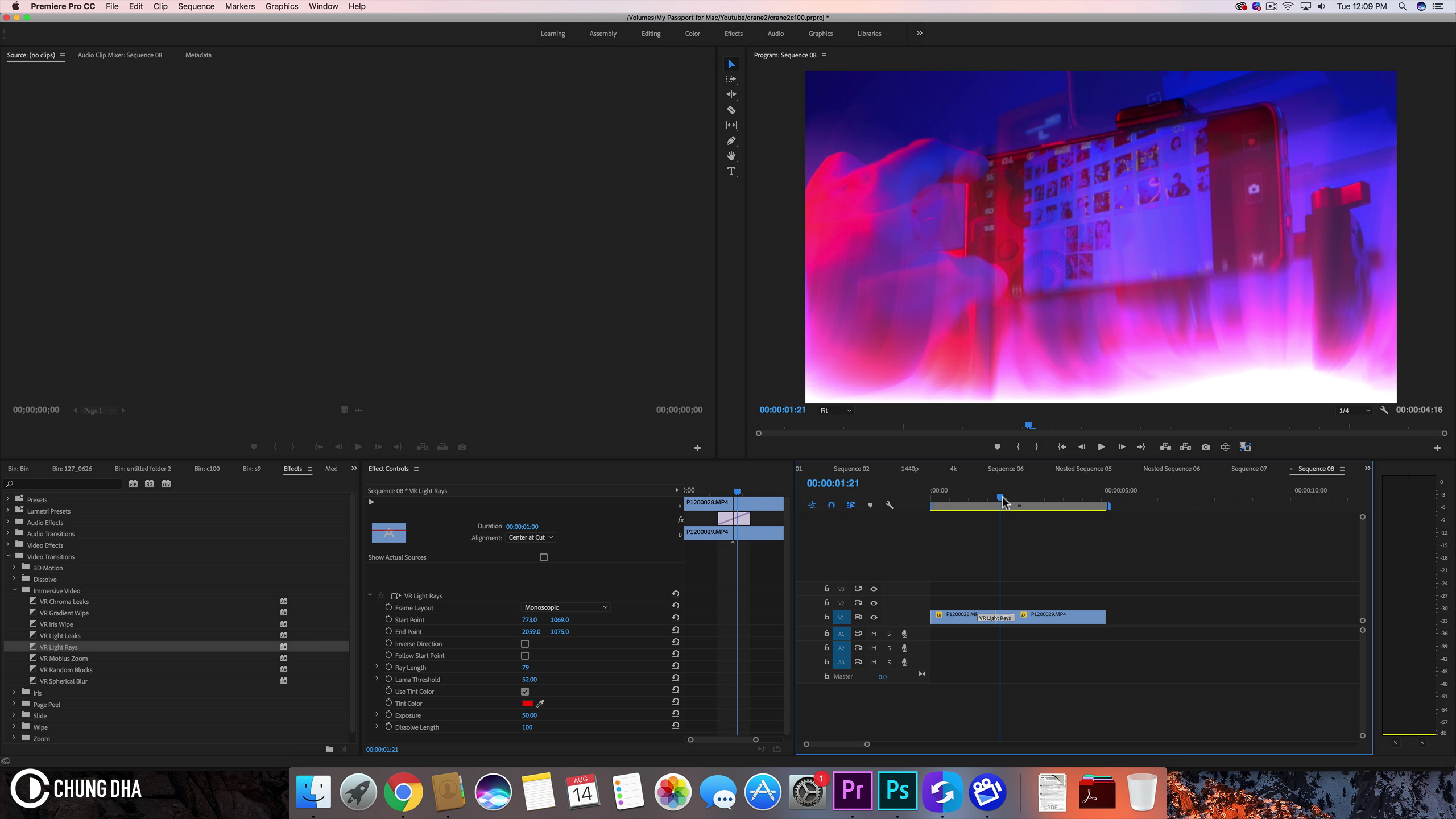 Also all these transitions you actually have quite a lot of parameters you can alter inside of the effects control to change them, some of then this is really needed as several of them aren’t really all that interesting in the default settings. For example the VR Light Rays actually quite a odd transition, yet altering it can change it into a fire like transition instead.