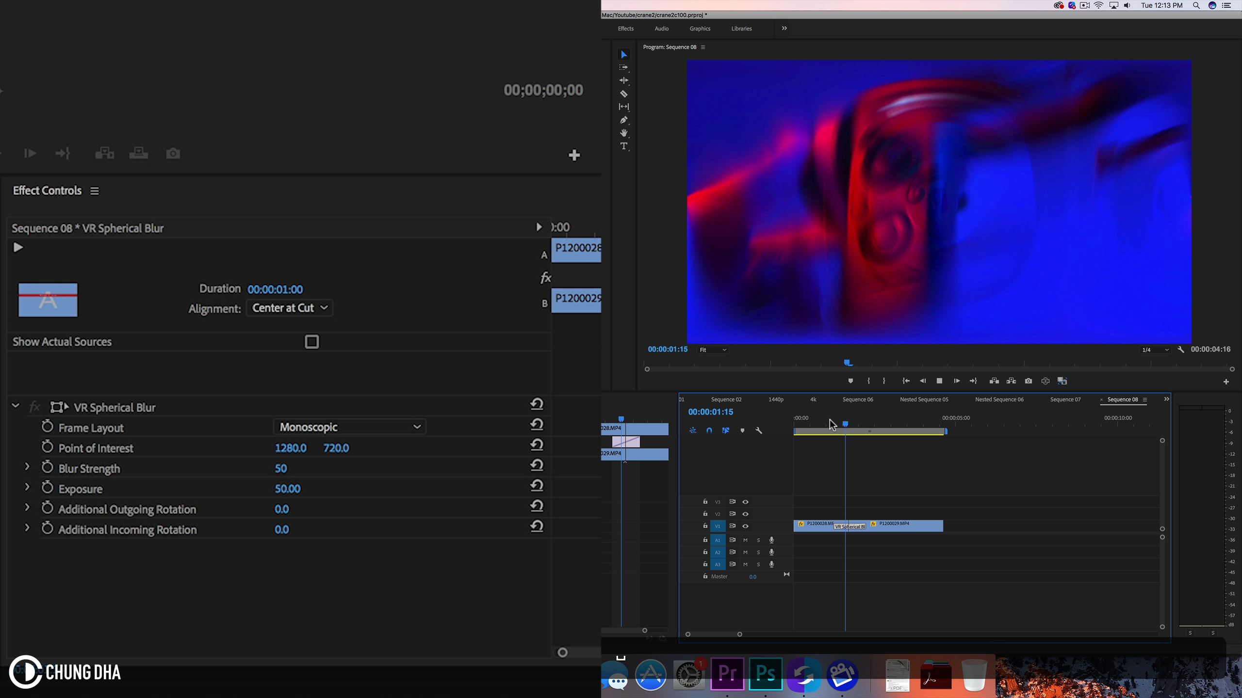 In Adobe Premiere Pro CC2018 there are new transitions called immersive video transitions, which are added for VR360 videos, however you can also apply them to normal videos to get a different kind of transitions. Also these transitions are easy to apply, as you just drag and drop them between two clips, however its too bad you can’t ramp the animations but only make it slower or faster by dragging the ends. Also these transitions are quite heavy even with my faster computer my 5k Imac, I do struggle playing them in real time in full and only can play them at 1/4 preview.