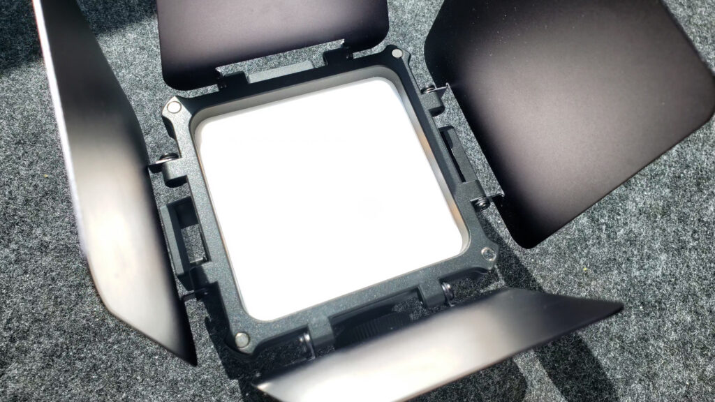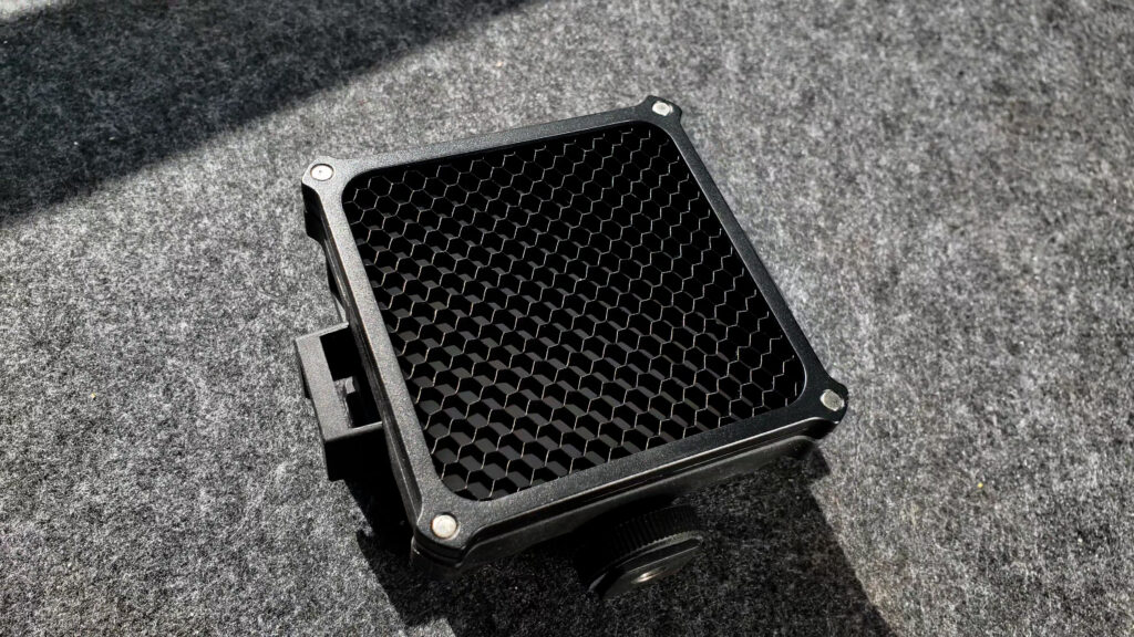 Accessory wise we have a grid and bardoors, the barndoors kinda work, but the soft light spreads still leaks everywhere. The best way to prevent the spread is to use a grid, which makes the light more directional, but you also lose some of the light. The light loss is actually not very extreme as it uses a very thin grid.