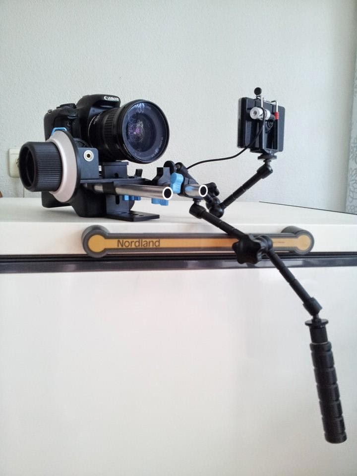One thing is that I can’t see the focus markers on the follow focus but mainly this setup probably be more for just handheld shooting and manually adjusting the focus while filming. You might also notice the big silver thing on the back of the monitor, I actually replaced the foot with a 1/4″ mount by screwing on a lightstand adapter, but I found out afterwards my phone bracket fits nicely over the monitor and seem to be a much easier way to mount the monitor. Hopefully can use this setup soon to film something with.
