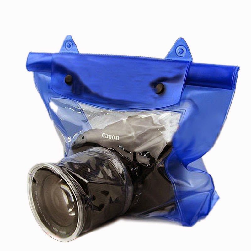 This one cost a bit more but you do get much more and enable to take much better quality pictures are you be shooting thought a solid glass element instead of through plastic. As this is a design far more closer to the Dicapac having a glass front element. Also it has a special design with holes where you can get a better hold and feel to change the focus and to press the shutter button. Also this has a bit of a different top design where the other was secured by simple clips and velcro, this is secured by few lock knobs and a whole hard plastic thing that also holds the camera strap. As for pricing this cost only 25buck paying far less than the Dicapac getting quite a similar design and quality. I would suggest to get this one however due to the glass element and the plastic top is quite bigger to store, but atleast give you much higher quality image that the one from 5 bucks. Click the following link to find this product on Ebay $25 Underwater case DSLR