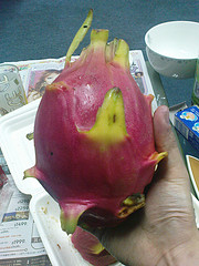 Here is something special a Dragon fruit a certain fruit which actually grown and cactus like plants. I bought two of them and it cost me 18,40 HK Dollar about 0,92 euro which is not that really expensive.