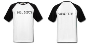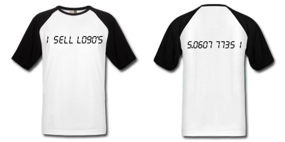 Here is a shirt I designed however it is a very simple design, but particularly aimed for logo or graphic designers. I used the calculator words method to get the words, when you look at the back you just only see the numbers but when you see the front you can read what is says. And when you look back you will notice that is the same thing written but turned 180 degrees, the numbers 5.0607 7735 1. This design is currently available at my online shirt shop.